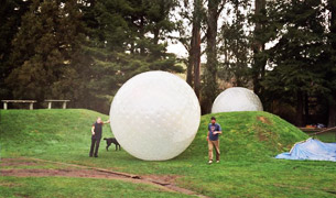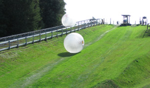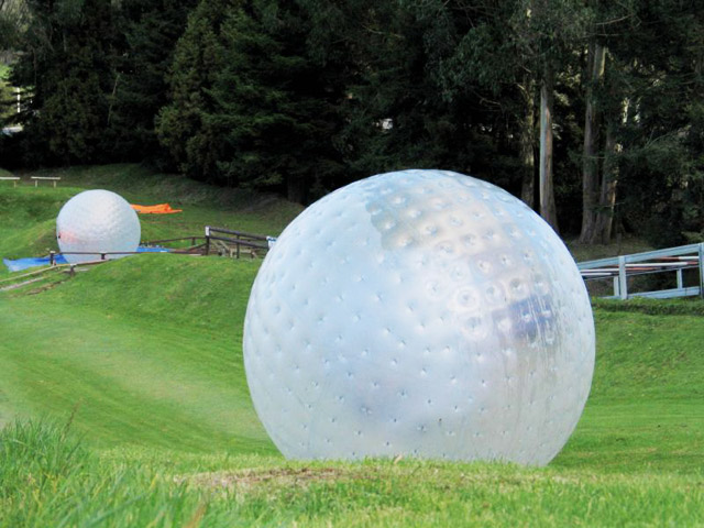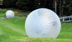 Zabawa, która wywołuje efekt „pralki” ? Dla nas to nie problem. Wchodzisz do kuli wypełnionej powietrzem i turlasz się po pochyłym terenie. Kula stacza się po zboczu coraz szybciej i szybciej… tracisz kontrolę! Prawdziwy test dla Twojego błędnika! Uczestnik przypinany jest wewnątrz kuli specjalną uprzężą, która gwarantuje bezpieczeństwo. Zapewniamy profesjonalny teren do zjazdów.