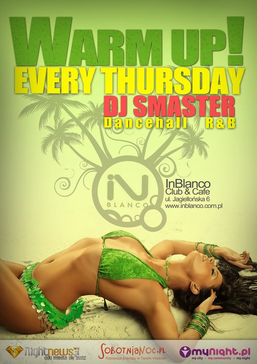 Warm-Up to cykl imprez danchall w Inblanco. Specjalną atrakcją imprezy jest występ Yummy Crew, wszyscy miłośnicy pięknych kobiet i świetnej zabawy na pewno powinni w czwartek koniecznie wybrać Inblanco. Imprezę rozkręca DJ S-MASTER.