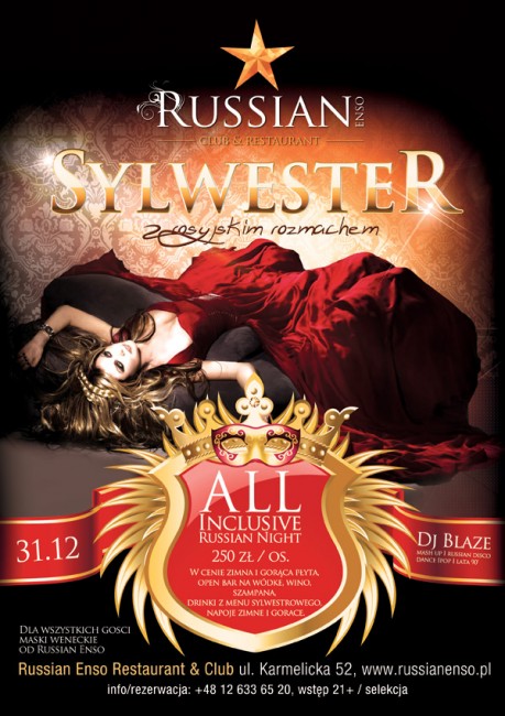 Zapraszamy do Russian Enso Club&Restaurant przy ulicy Karmelickiej 52 po dawkę niezapomnianych sylwestrowych emocji.