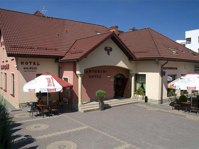Hotel Santorini mieści się w północnej części Krakowa, w dzielnicy Nowa Huta przy ul. Bulwarowej 35B. W Hotelu i Restauracji Santorini dominuje klimat i czar wspaniałej Grecji, jej antycznej kultury. Hotel gwarantuje przyjazną, domową atmosferę, a w szczególności wielką gościnność. Hotel zapewnia ciszę, mnóstwo zieleni oraz aktywny wypoczynek, ponieważ znajduje się w sąsiedztwie uroczego parku z zalewem nowohuckim, kortów tenisowych i boisk do gry w piłkę. Hotel posiada 27 pokoi, które są podzielone dla osób niepalących i palących. W Hotelu Santorini mogą Państwo skorzystać z sejfu, a także kantoru wymiany walut. Przytulnie urządzony kącik wypoczynkowy pozwoli zrelaksować się po całym dniu, w którym można spokojnie poczytać, posurfować po Internecie lub pograć z przyjaciółmi.