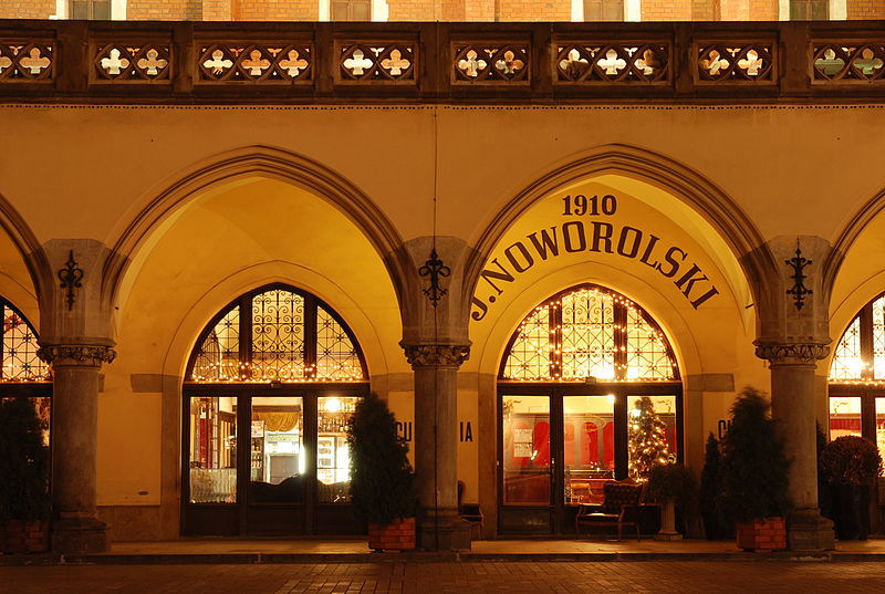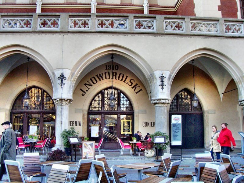 Kawiarnia Noworolski mieści się na parterze Sukiennic od strony Kościoła Św. Wojciecha. Kawiarnia posiada bogatą, stuletnią tradycję. Miejsce to jest idealne dla każdego i na różnego typu spotkania towarzyskie, biznesowe lub romantyczne randki we dwoje. Kawiarnia zorganizuje dla swoich gości większe przyjęcia i bankiety dla 150 osób. Istnieje możliwość rezerwacji arkad Sukiennic w sezonie letnim z wyjątkowym widokiem na Rynek Główny i Kościół Mariacki.