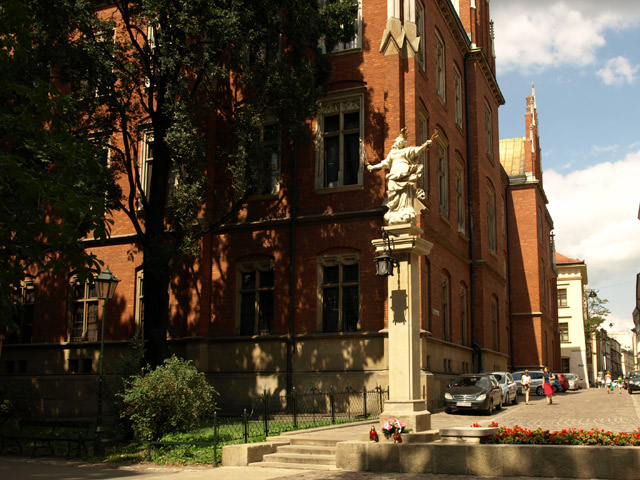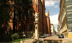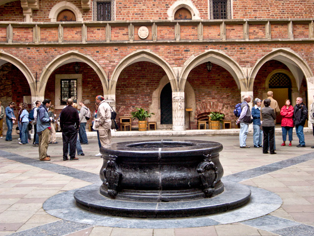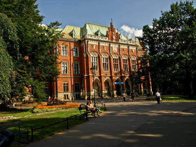 W 1364 roku król Kazimierz Wielki założył 3-wydziałowe Studium Generale. Nie wiemy na pewno, gdzie była jego siedziba. Dopiero dzięki testamentowi św. królowej Jadwigi, w rok po jej zgonie (1400), praktycznie nie funkcjonującą uczelnię reaktywowano. Używała nazwy "uniwersytet" (powstał wydział teologiczny). Do ok. poł. XV w. powstał gmach w narożniku dzisiejszych ulic św. Anny i Jagiellońskiej - Collegium Maius, w takim kształcie, w jakim możemy go dzisiaj podziwiać! Ten najstarszy uniwersytecki gmach w Polsce oraz zbiory Muzeum Collegium Maius to prawdziwa perła muzealna w skali światowej. Przechowywane są tu najcenniejsze uniwersyteckie pamiątki, dzieła sztuki i bogata kolekcja przyrządów naukowych. Możemy zwiedzać ekspozycję stałą lub wersję poszerzoną o wystawę instrumentów naukowych i galerię rzeźby średniowiecznej. Na wystawie interaktywnej "Świat zmysłów" każdy może własnoręcznie wykonywać proste doświadczenia, posługując się kopiami starych instrumentów naukowych. Dodatkowo oglądamy film o Uniwersytecie. Na wystawie czasowej w tym roku oglądamy temat "Chopin w Krakowie i osobiste po nim pamiątki". Z wrażeń ochłaniamy we wspaniałych podziemiach, mieszczących galerię w kawiarni. Na dziedzińcu podziwiamy ozdobny zegar z figurami zasłużonych dla uczelni postaci, które pokazują się w rytm hymnu "Gaudeamus Igitur". Ponadto poznajemy budynki różnych instytutów, miejsca związane ze sławnymi Polakami (Jan Matejko, Karol Wojtyła). Wyróżnia się Collegium Novum, obecna siedziba rektora i dziekanów z kolejną wspaniałą aulą. Przy Coll. Witkowskiego "spotkamy" żaka Mikołaja Kopernika. Całość uzupełni wizyta we wspaniałej, barokowej kolegiacie akademickiej św. Anny, fundacji społeczności uniwersyteckiej z początków XVIII wieku.