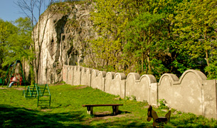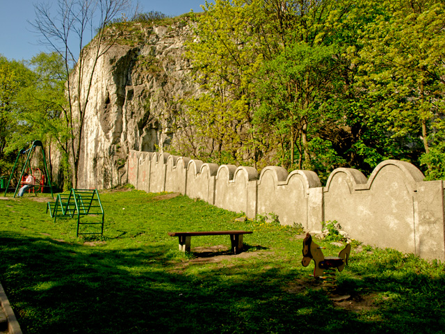 Na terenie dawnego kamieniołomu "Liban", u stóp Kopca Krakusa, kręcono sceny z obozu koncentracyjnego w Płaszowie,