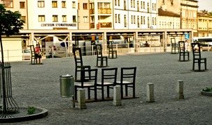 obecnie Bohaterów Getta, Niemcy zamordowali około 2 tysięcy Żydów, upamiętnionych krzesłami-pomnikami.
